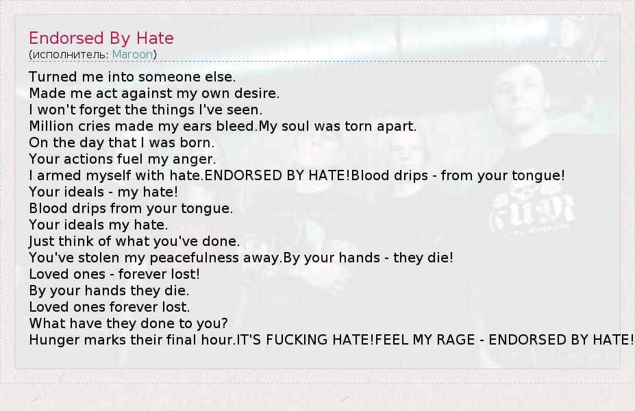 А как ты думаешь, о чем песня "Endorsed By Hate" ?