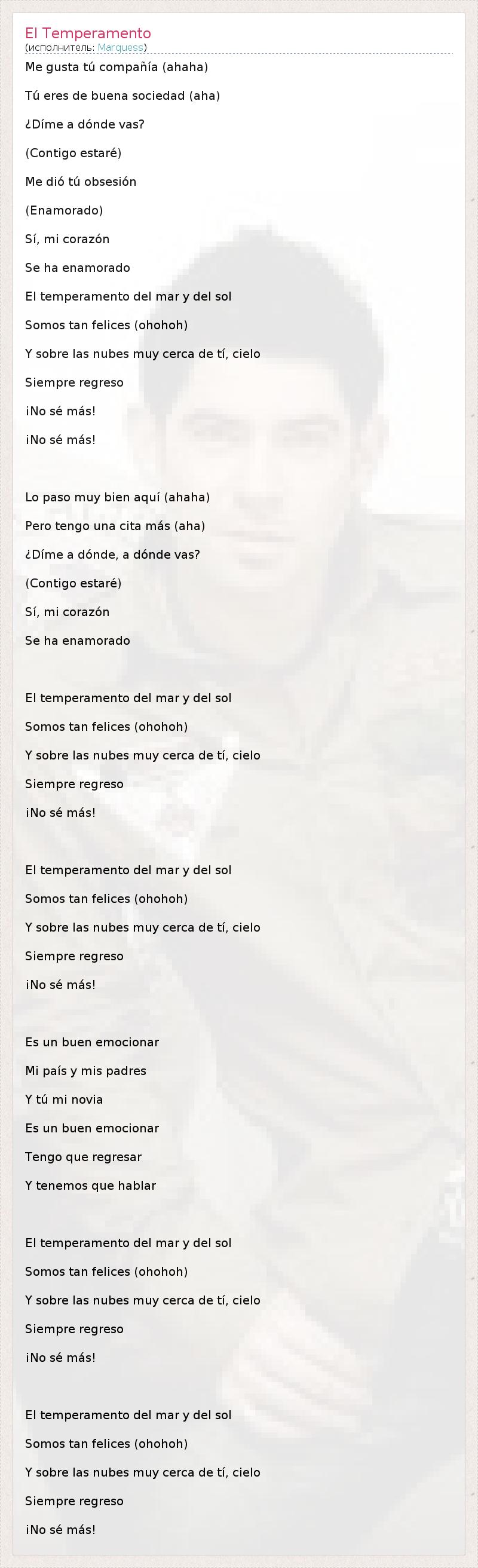 А как ты думаешь, о чем песня "El Temperamento" ?