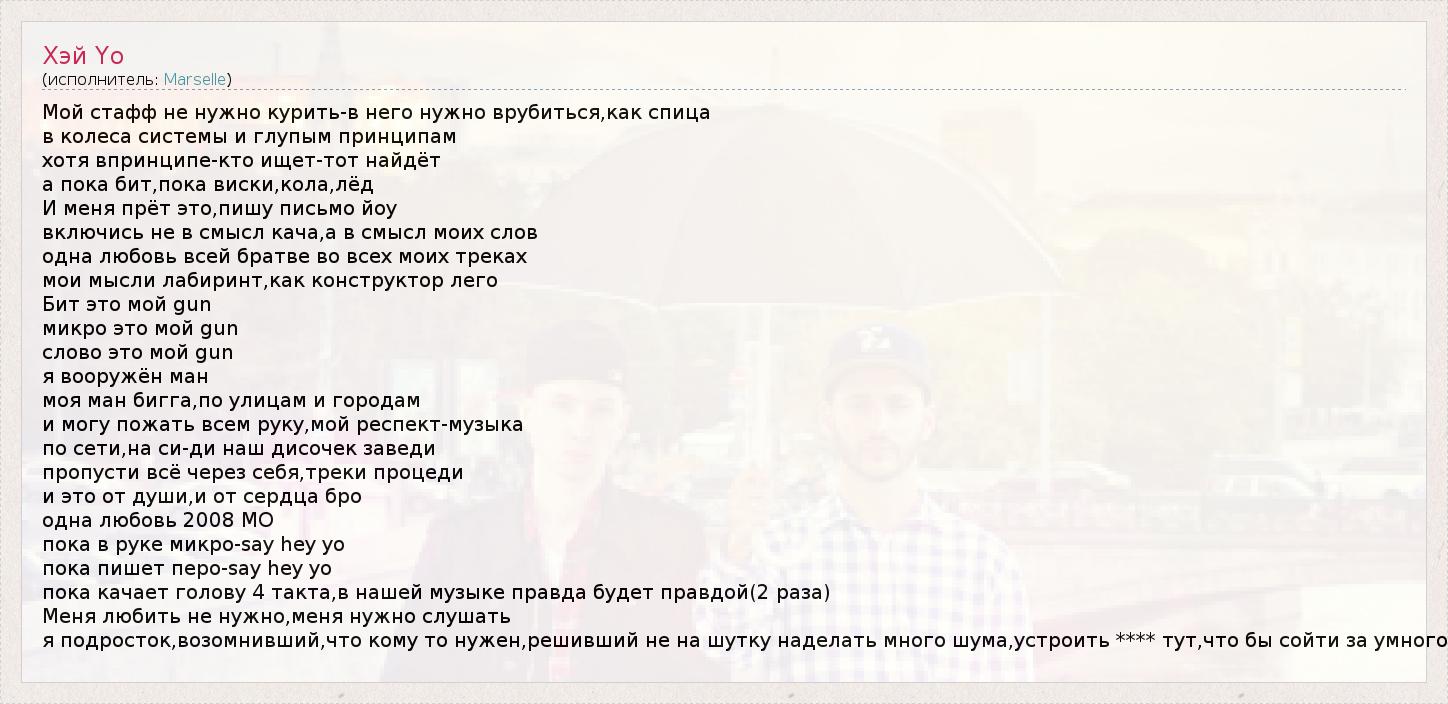 Это интересно:Группа Marselle (Марсель) – Nel и Mc Levan aka L’One, за свое недолгое существование успела завоевать внушительное количество слушателей. Выпустив первый сингл «Москва» с альбома «MARS» группа взорвала жизнь столицы. На радиостанции Next Fm трек занимал первое место в хит-параде и продержался... продолжение