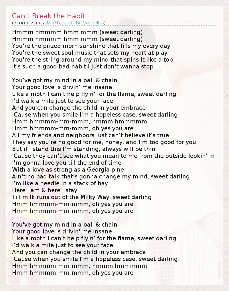 А как ты думаешь, о чем песня "Can't Break the Habit" ?