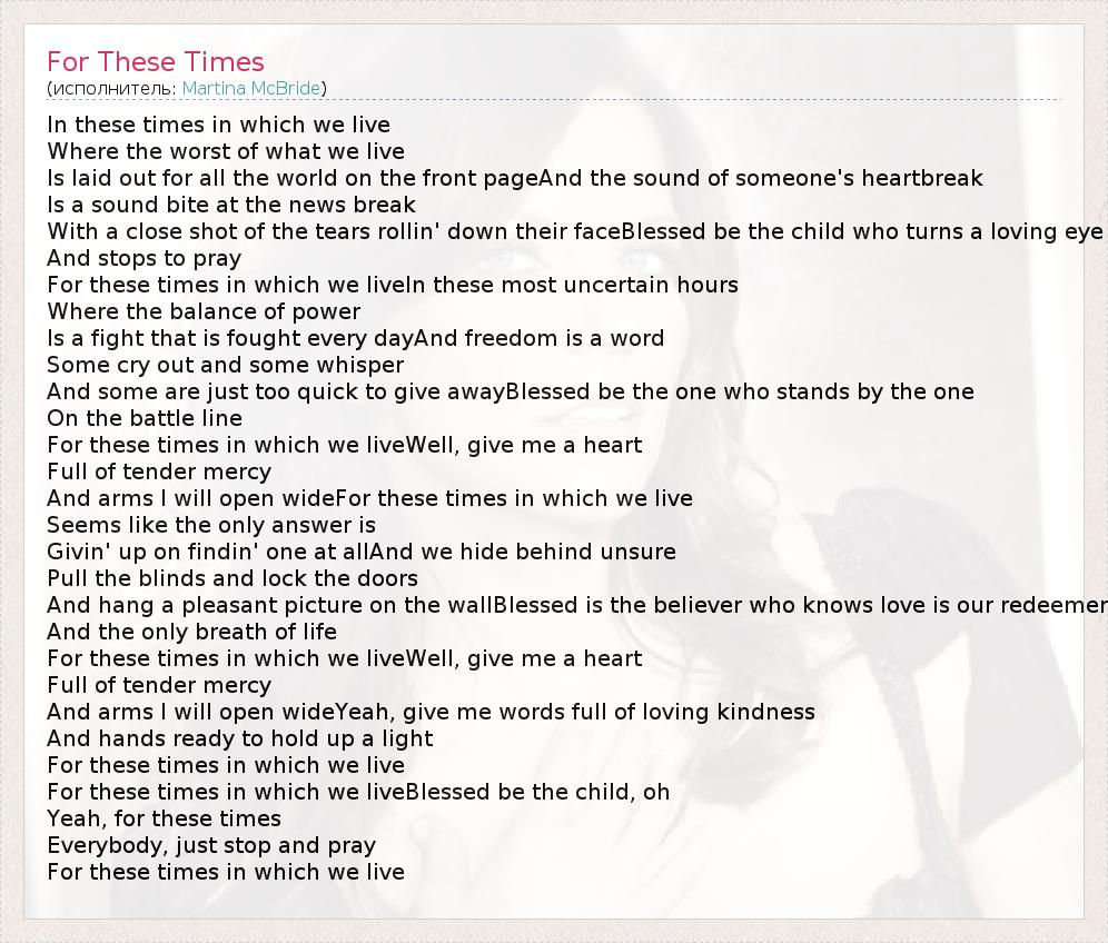 А как ты думаешь, о чем песня "For These Times" ?