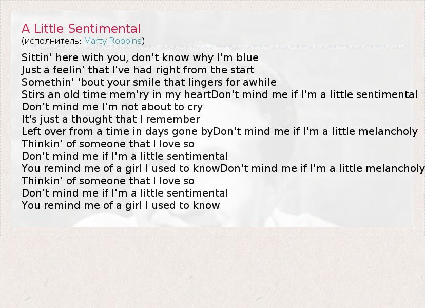 А как ты думаешь, о чем песня "A Little Sentimental" ?