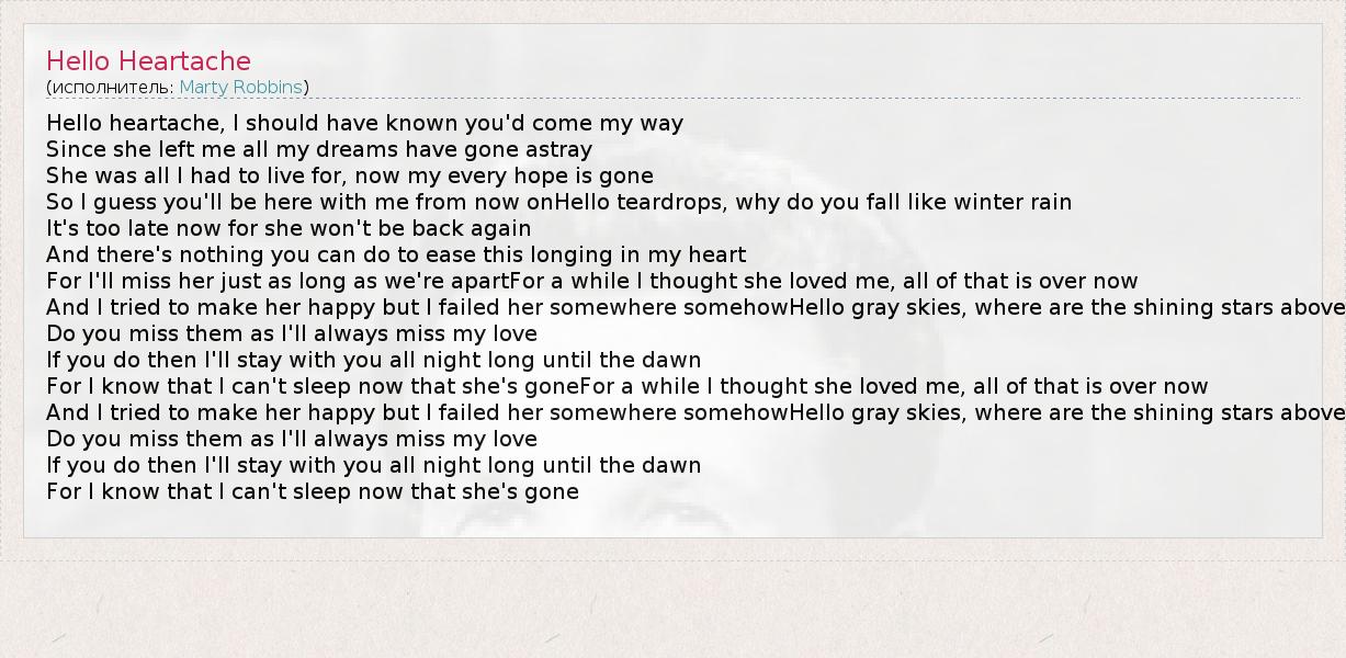 А как ты думаешь, о чем песня "Hello Heartache" ?
