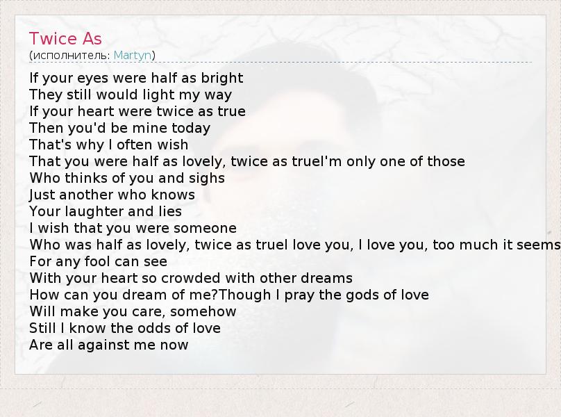 А как ты думаешь, о чем песня "Twice As" ?