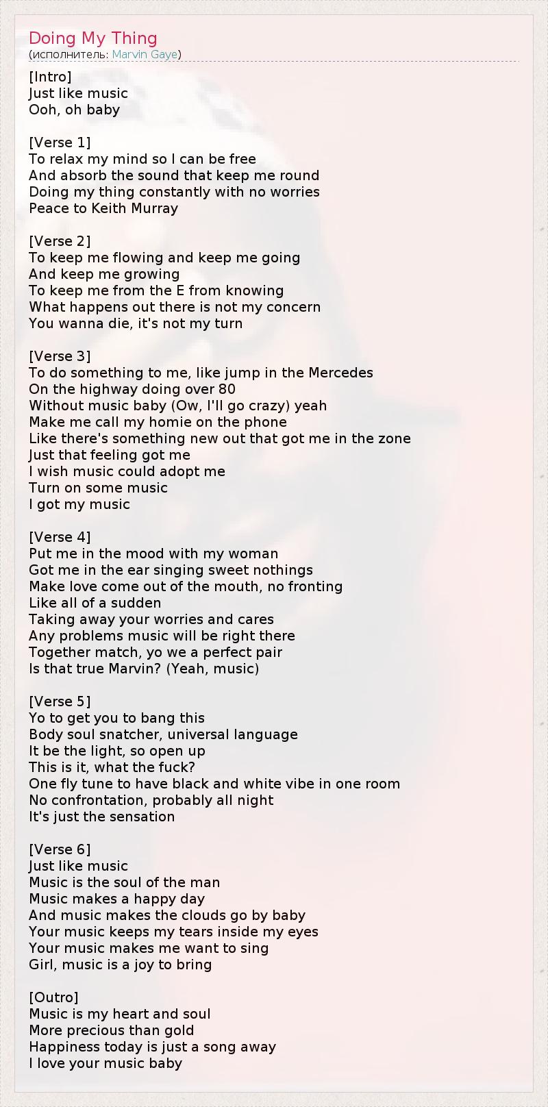 А как ты думаешь, о чем песня "Doing My Thing" ?