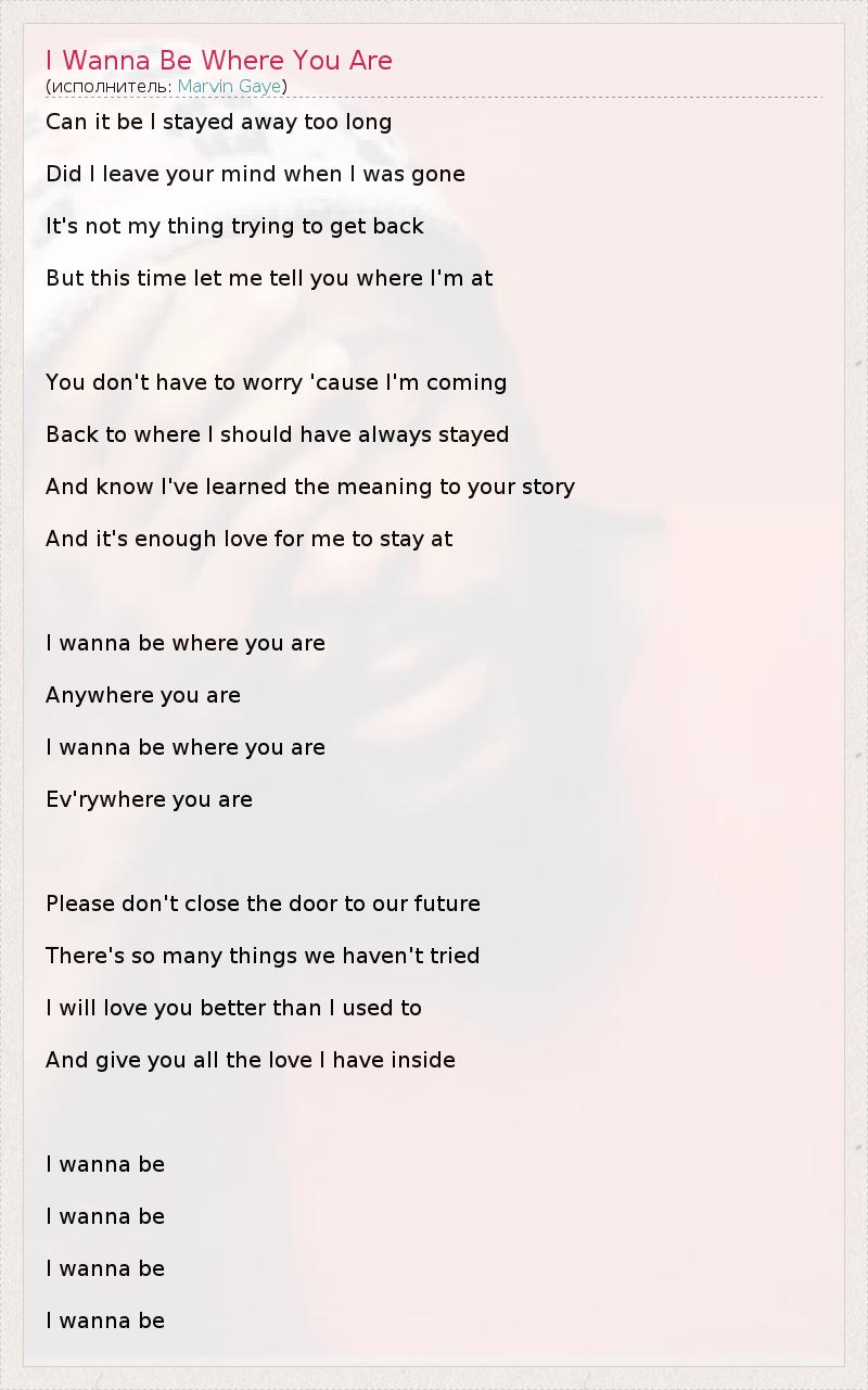 ГлавнаяИсполнителиMarvin GayeI Wanna Be Where You Are