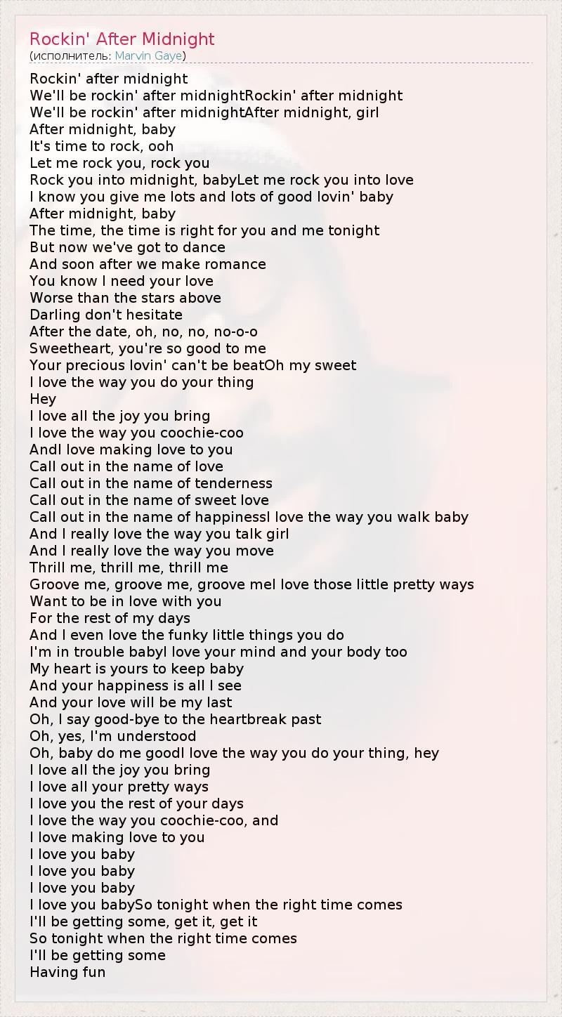 А как ты думаешь, о чем песня "Rockin' After Midnight" ?