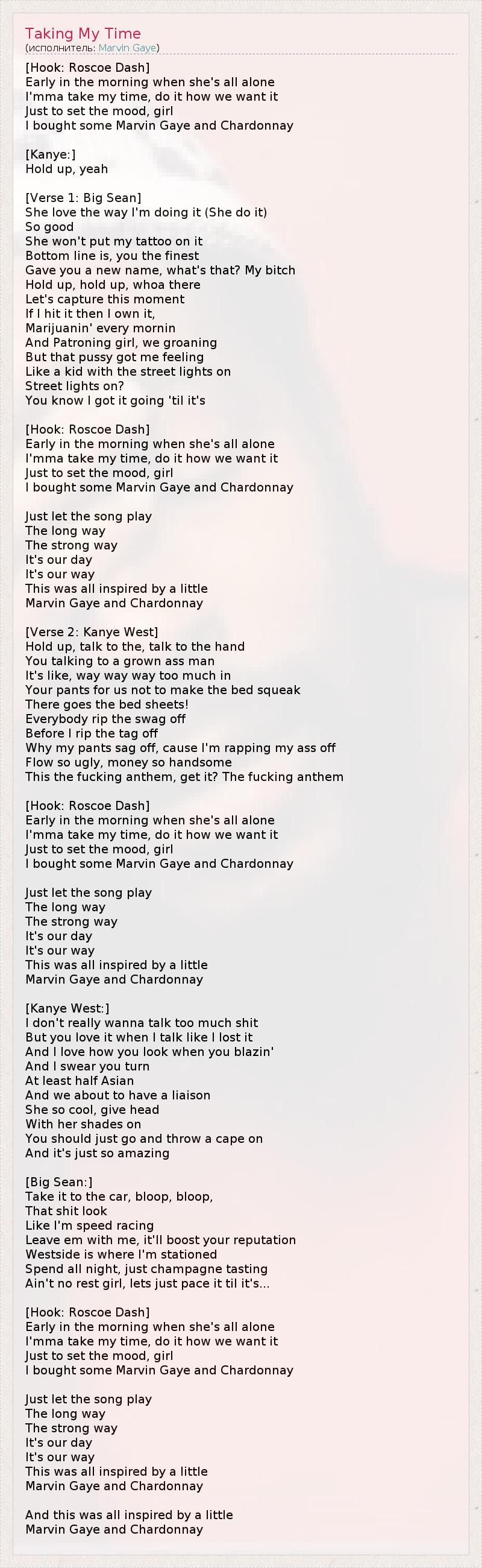 А как ты думаешь, о чем песня "Taking My Time" ?