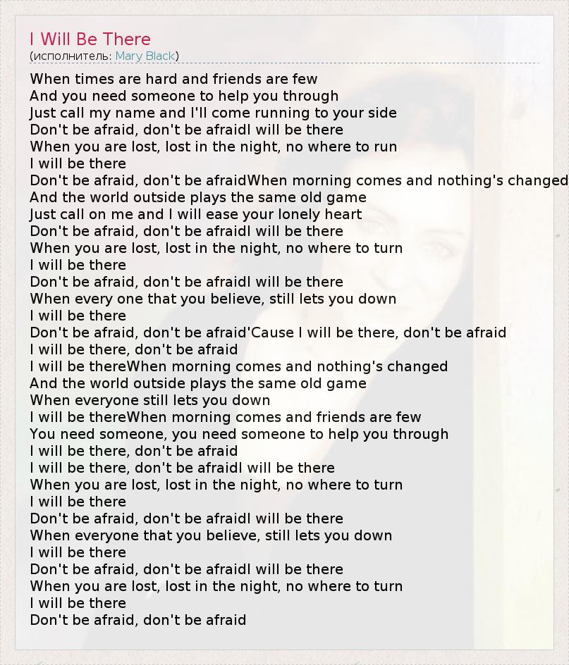 I will be there, don't be afraidI will be there