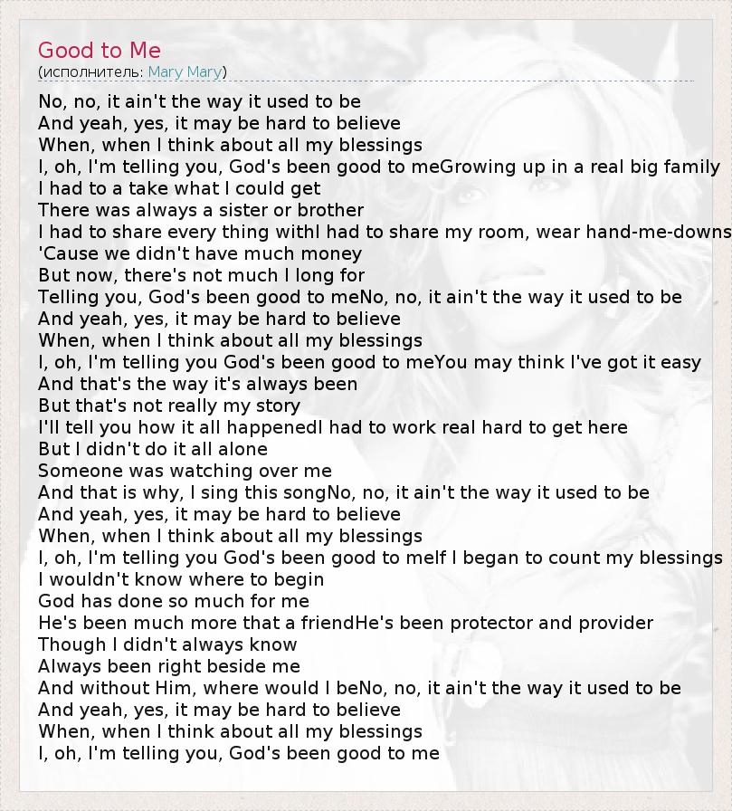 Telling you, God's been good to meNo, no, it ain't the way it used to be