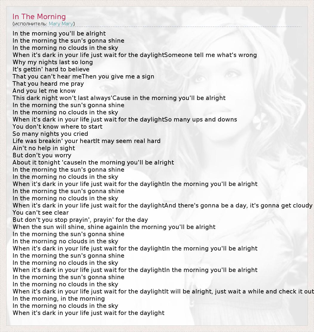 In the morning the sun's gonna shine