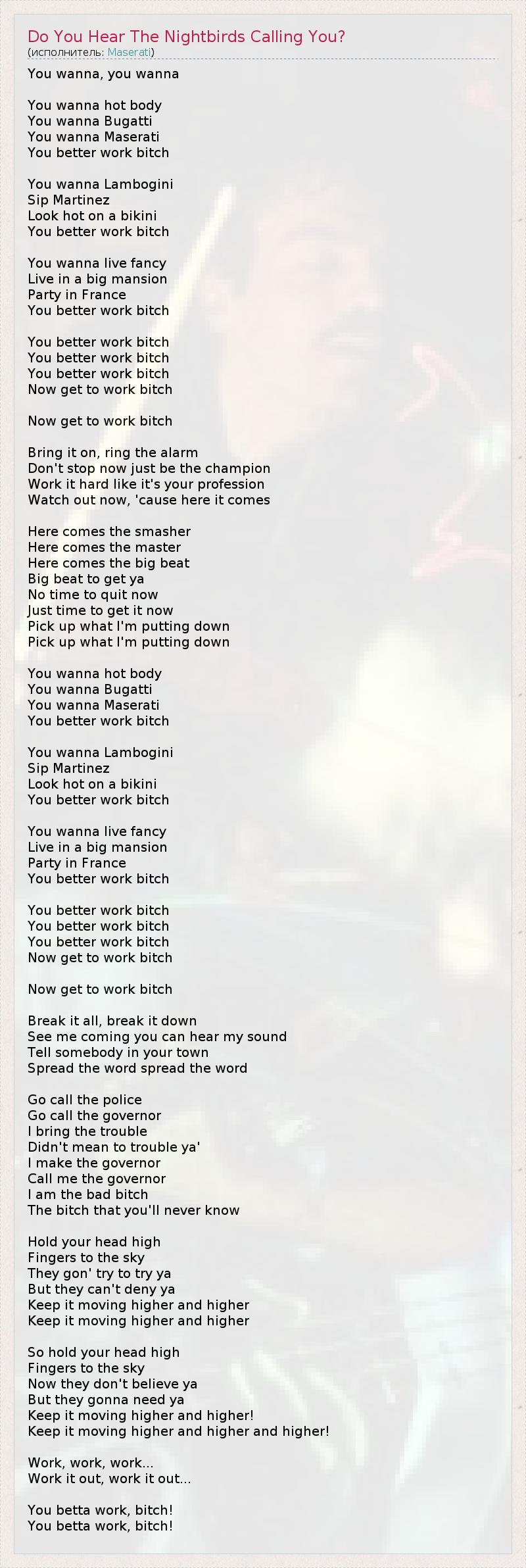 ГлавнаяИсполнителиMaseratiDo You Hear The Nightbirds Calling You?