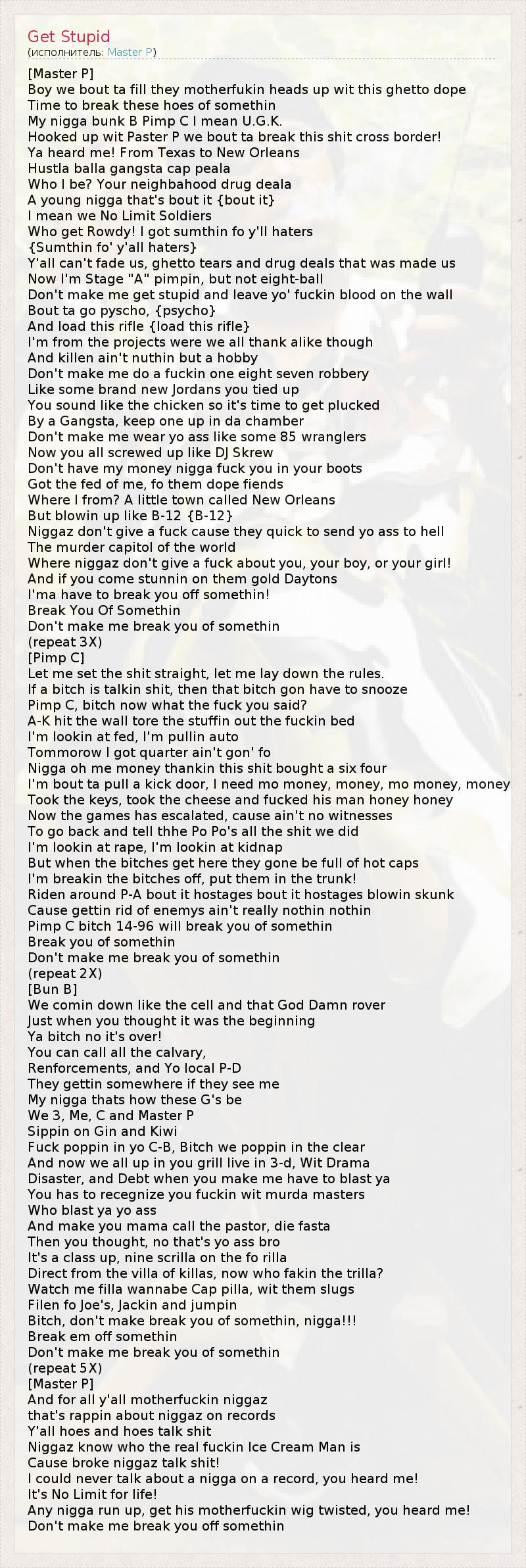 Don't make me get stupid and leave yo' fuckin blood on the wall