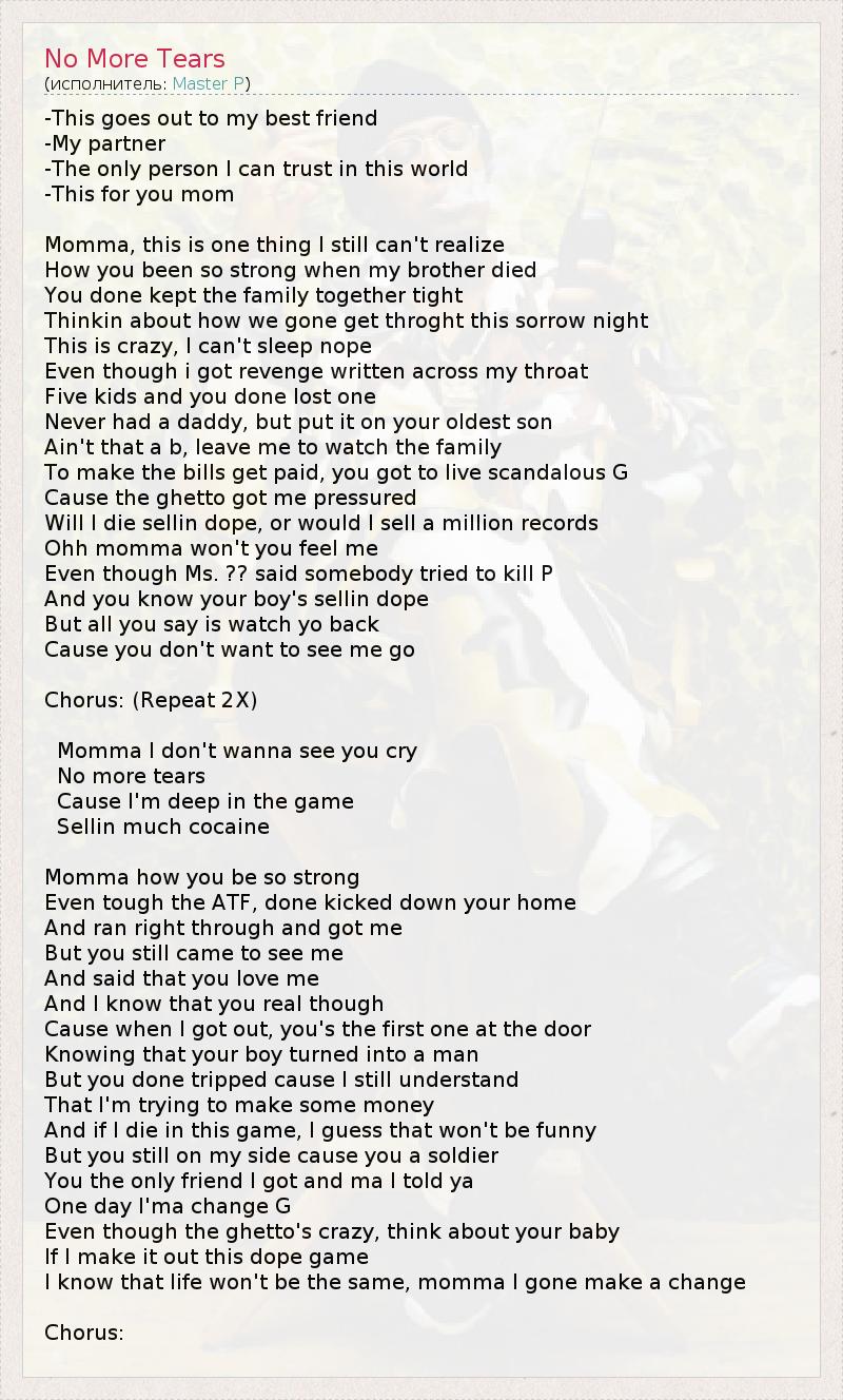 Momma I don't wanna see you cry