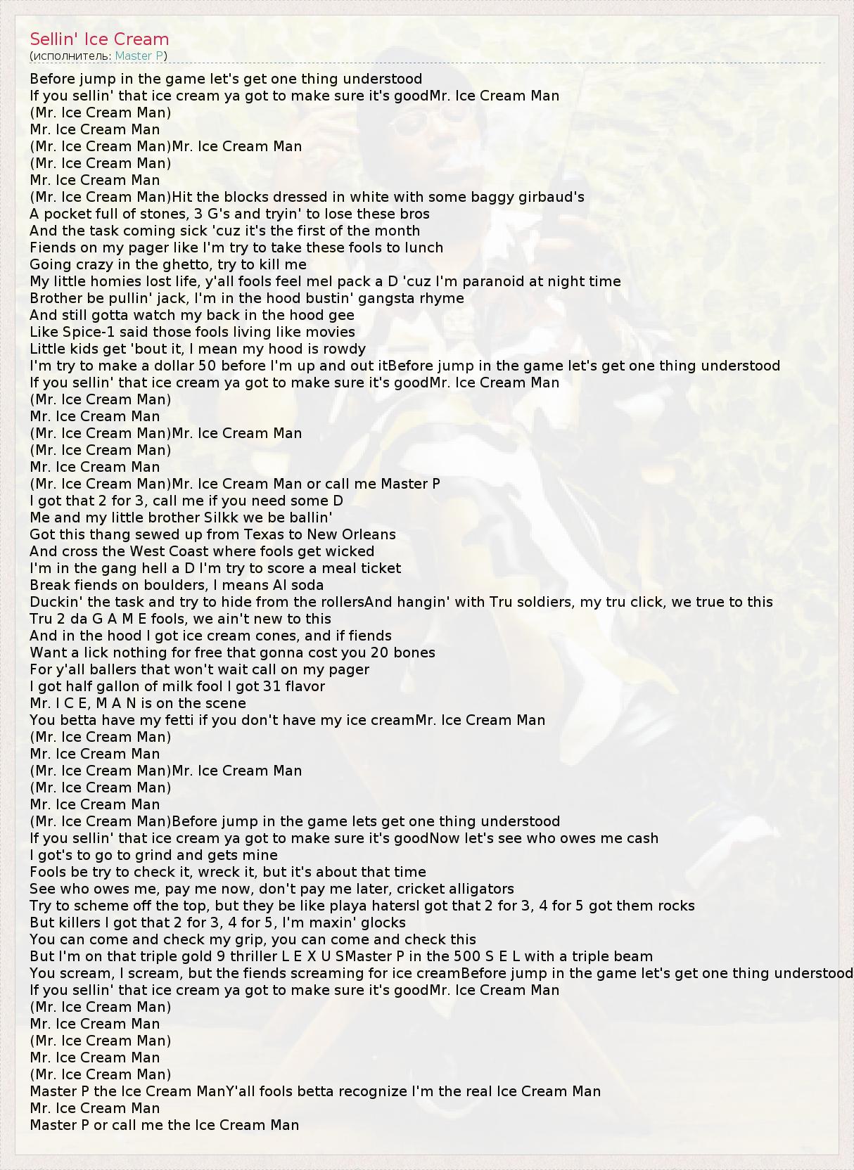 А как ты думаешь, о чем песня "Sellin' Ice Cream" ?