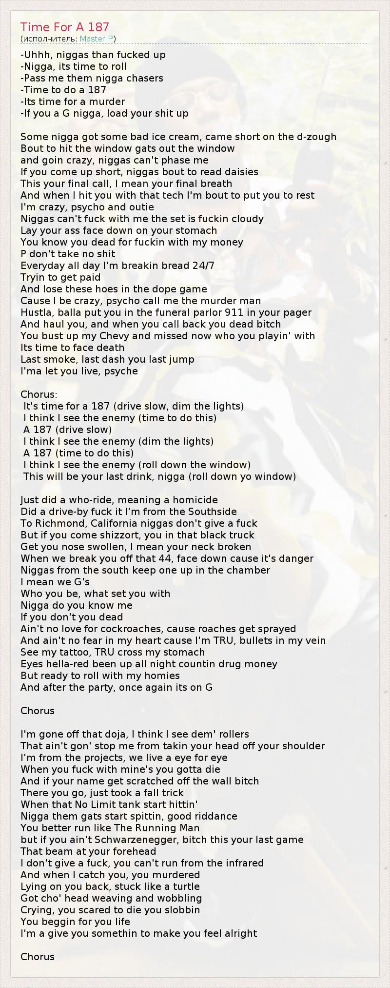 А как ты думаешь, о чем песня "Time For A 187" ?