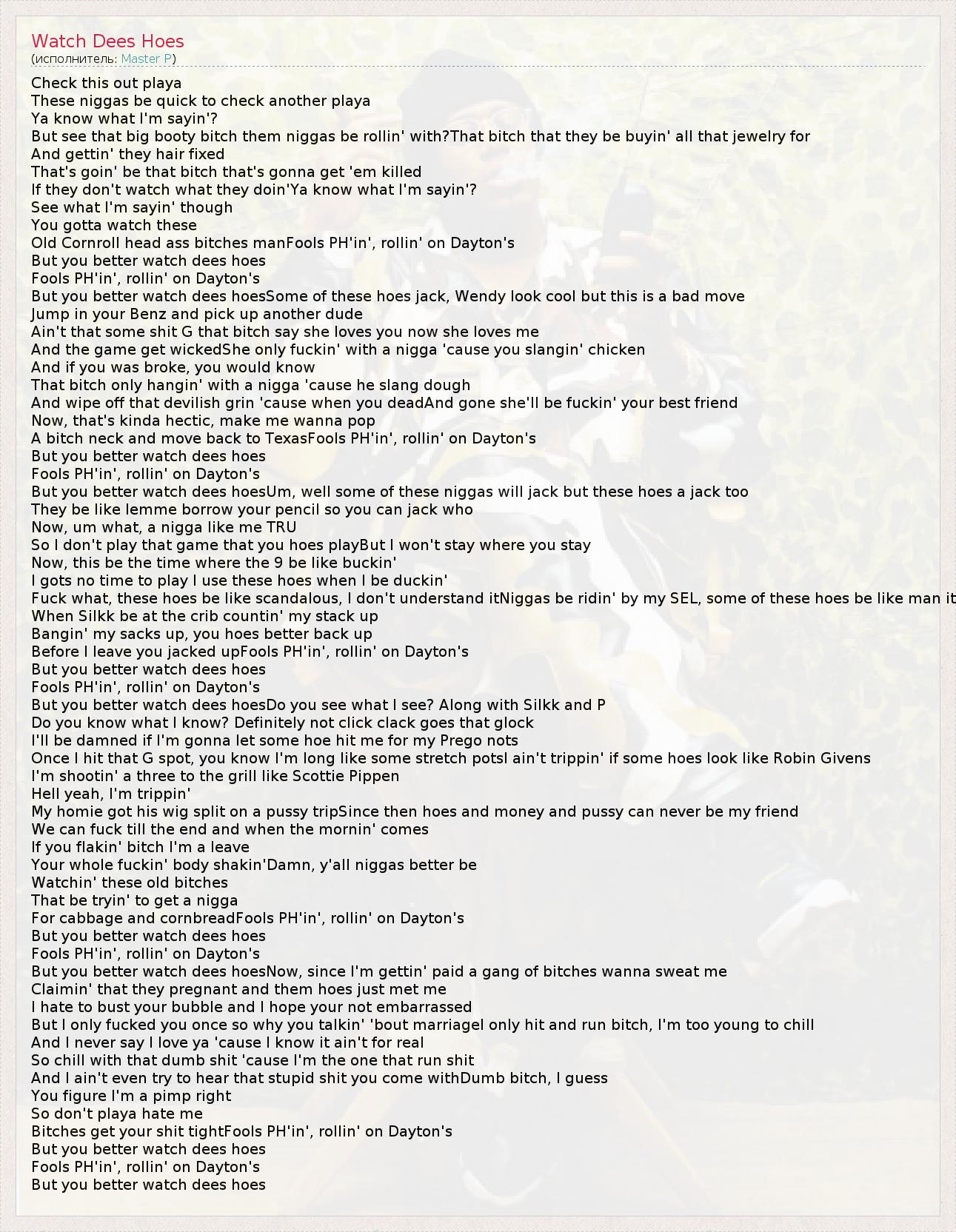 А как ты думаешь, о чем песня "Watch Dees Hoes" ?