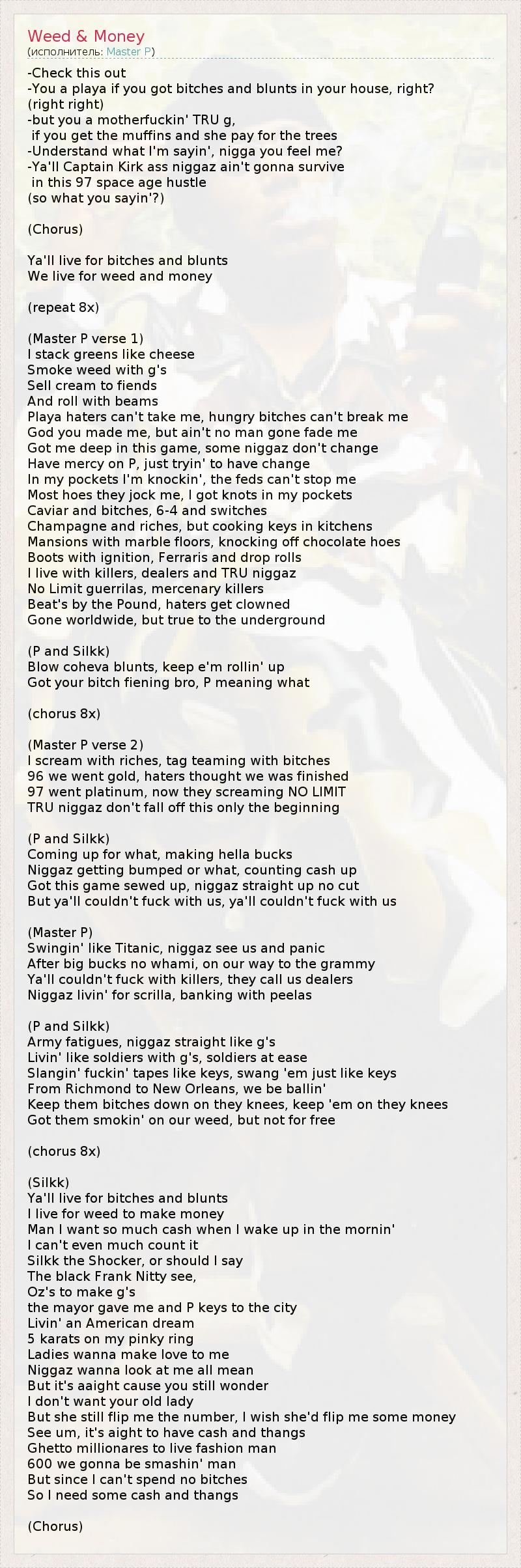 А как ты думаешь, о чем песня "Weed & Money" ?