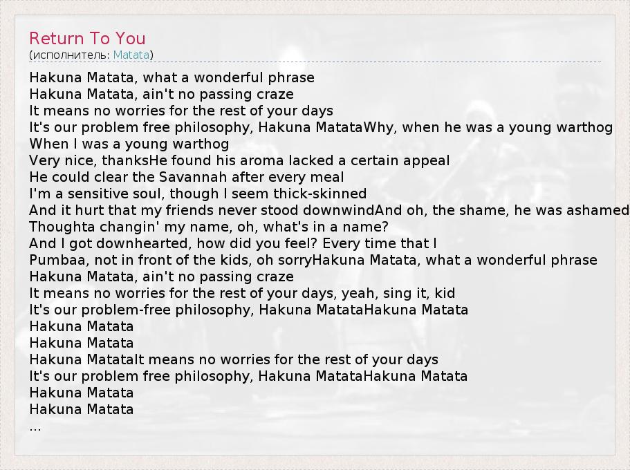 It's our problem free philosophy, Hakuna MatataHakuna Matata