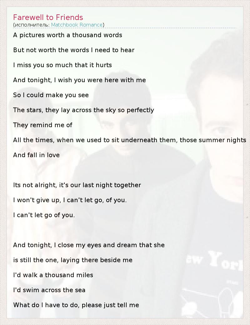 А как ты думаешь, о чем песня "Farewell to Friends" ?