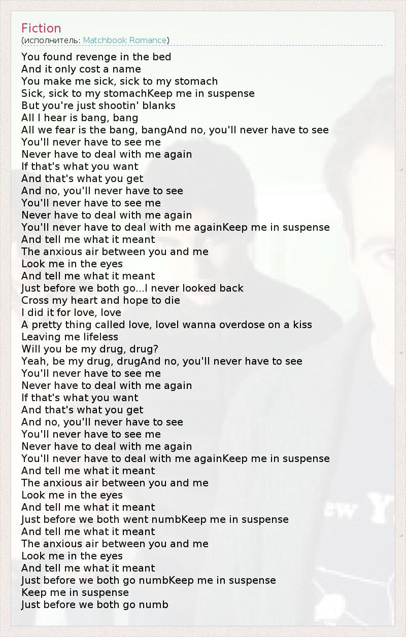 Это интересно:История группы «Matchbook Romance» началась в 1997 году, в Покипси (Poughkeepsie), Нью Йорк, когда Ryan Kienle (бас), Andrew Jordan (вокал, гитара), Aaron Stern (барабаны) и Ryan “Judas” Depaolo (гитара) собрались под вывеской «Getaway». Объединив... продолжение