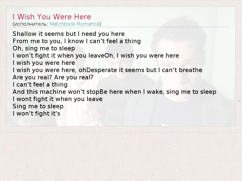 А как ты думаешь, о чем песня "I Wish You Were Here" ?