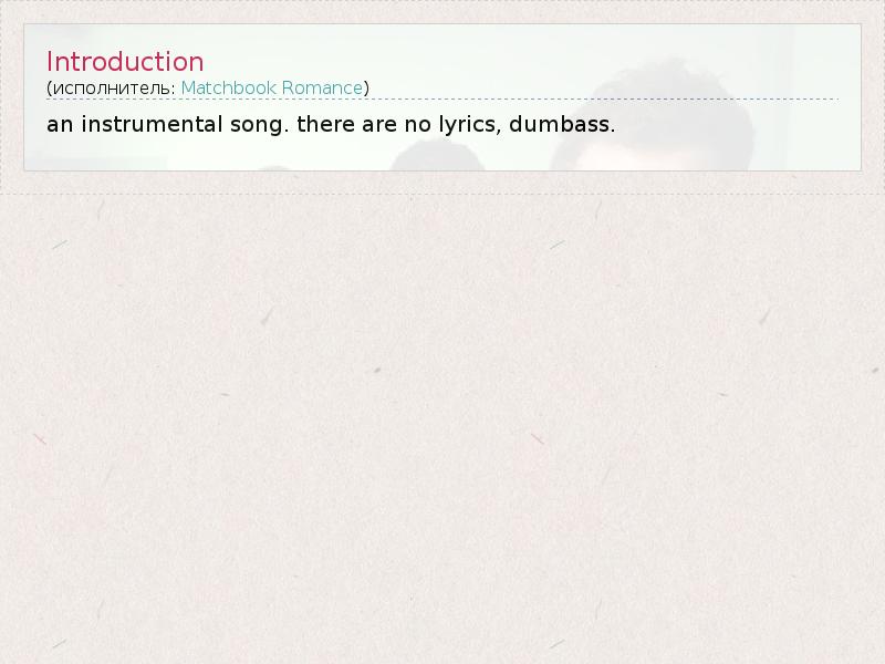 А как ты думаешь, о чем песня "Introduction" ?