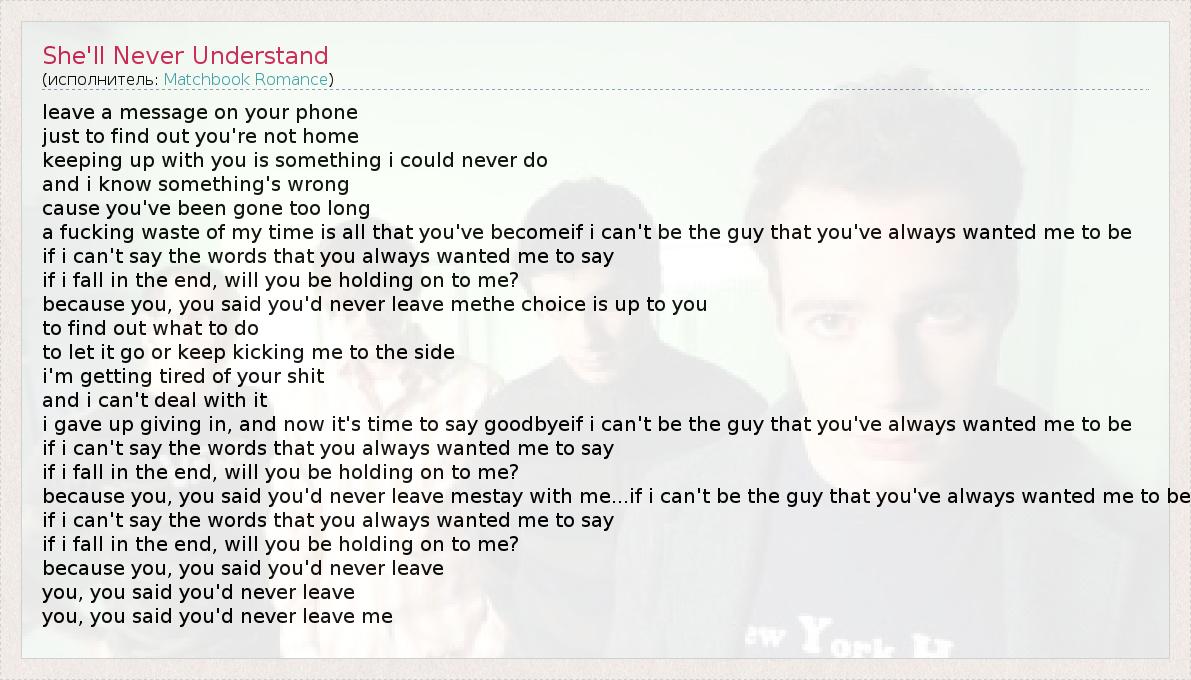 А как ты думаешь, о чем песня "She'll Never Understand" ?