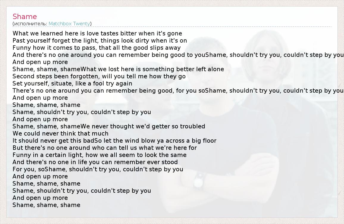 And there's no one around you can remember being good to youShame, shouldn't try you, couldn't step by you