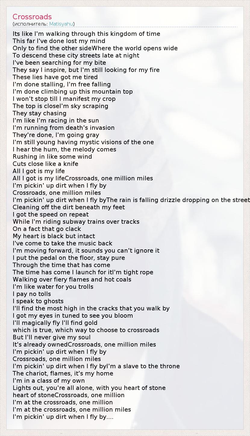 I'm pickin' up dirt when I fly byThe rain is falling drizzle dropping on the street