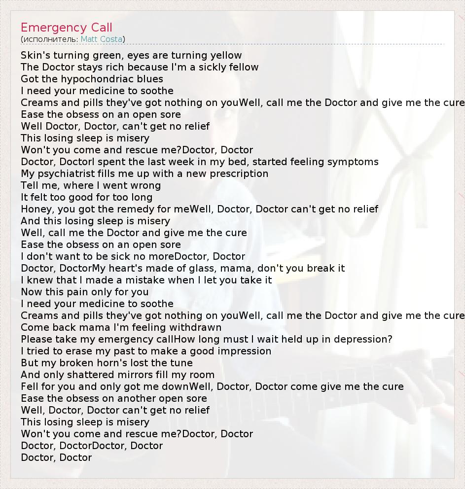 А как ты думаешь, о чем песня "Emergency Call" ?