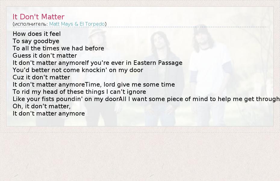 А как ты думаешь, о чем песня "It Don't Matter" ?