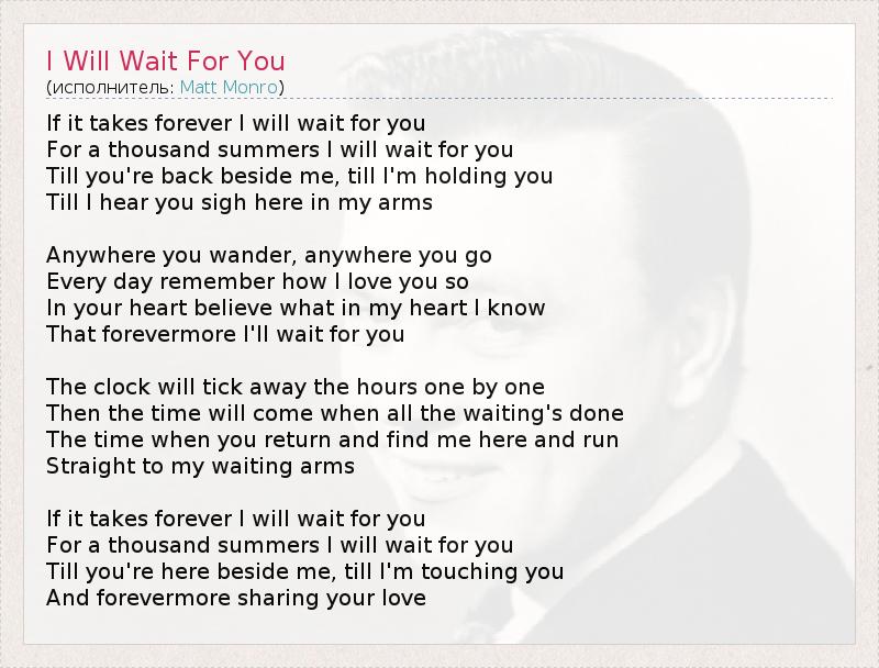 А как ты думаешь, о чем песня "I Will Wait For You" ?