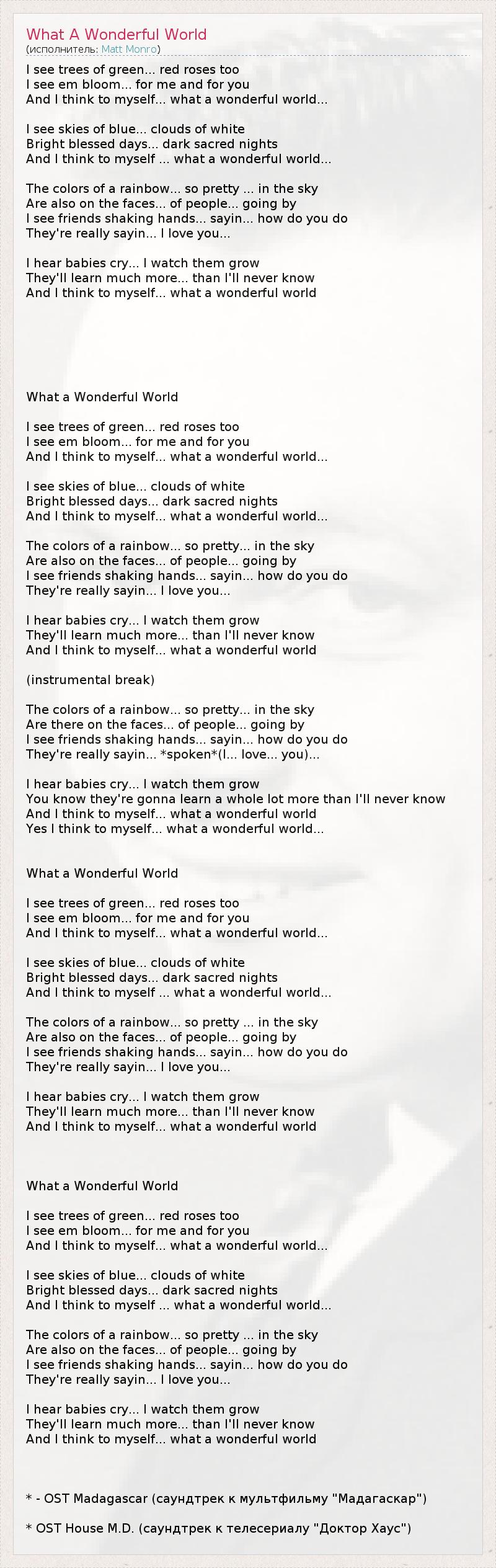 А как ты думаешь, о чем песня "What A Wonderful World" ?
