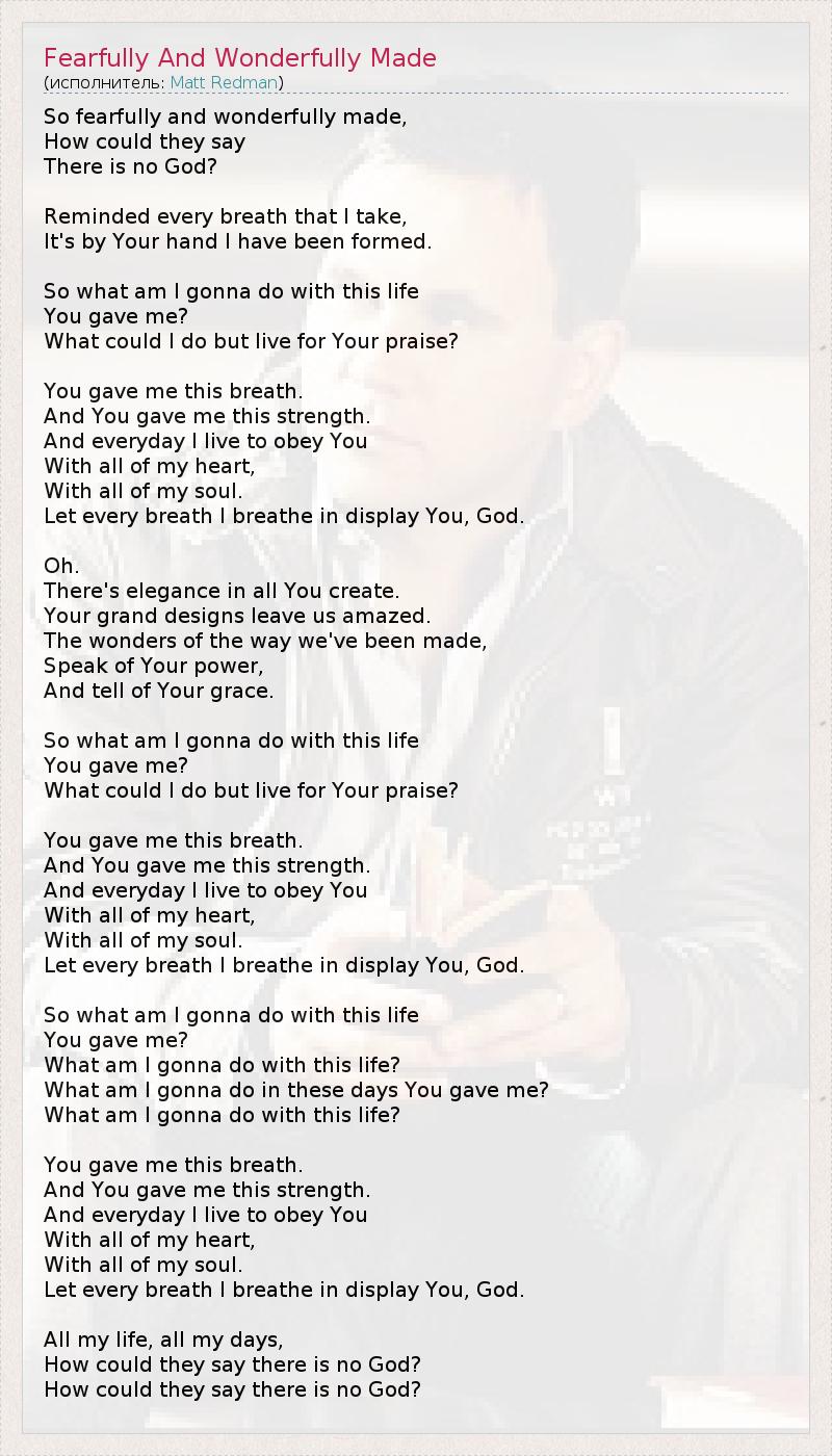 ГлавнаяИсполнителиMatt RedmanFearfully And Wonderfully Made