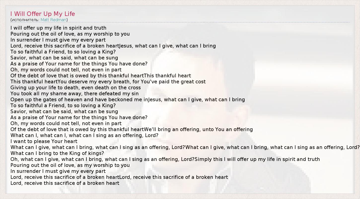 А как ты думаешь, о чем песня "I Will Offer Up My Life" ?