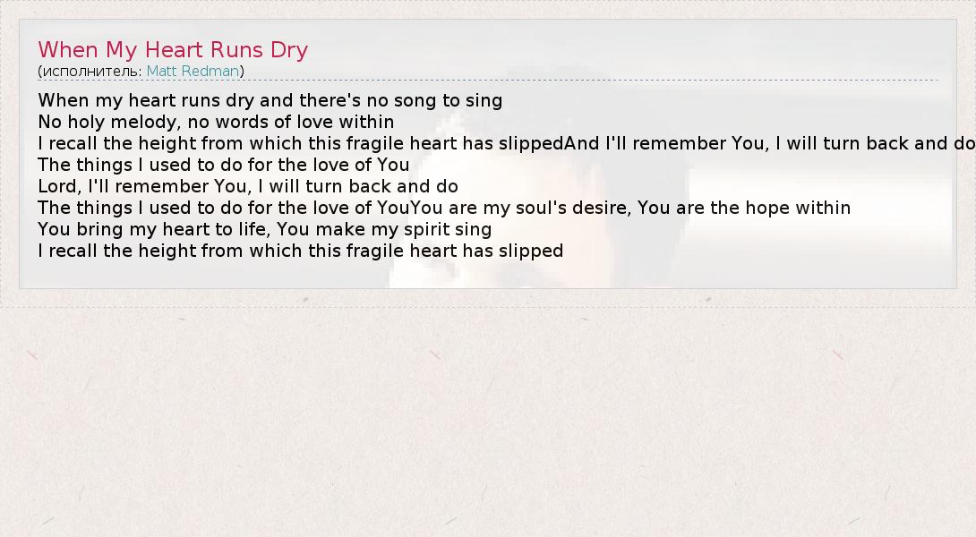 А как ты думаешь, о чем песня "When My Heart Runs Dry" ?