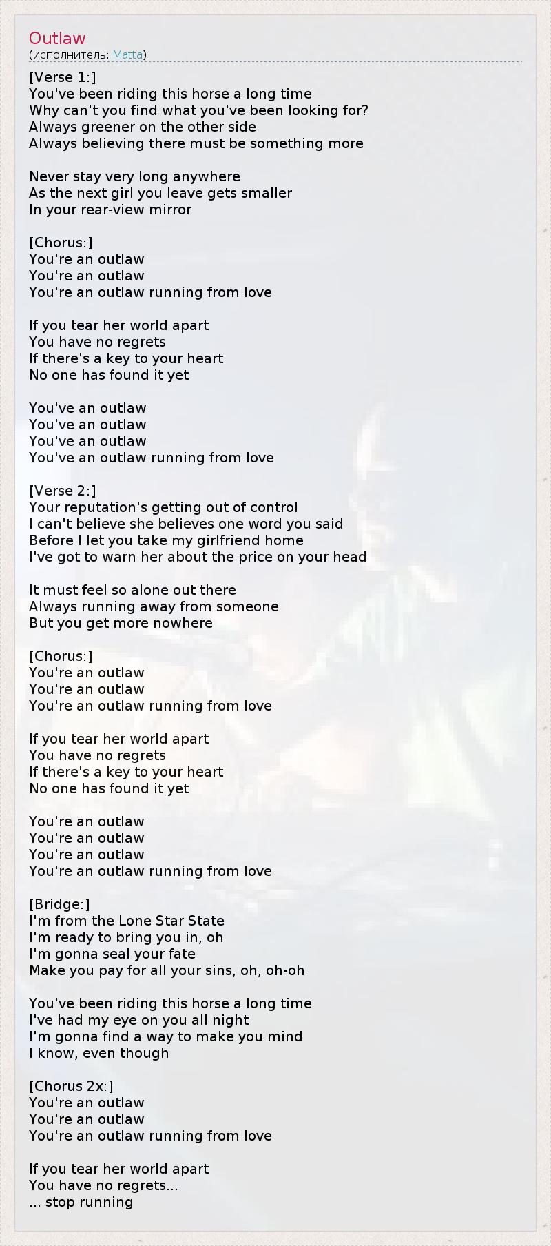 А как ты думаешь, о чем песня "Outlaw" ?