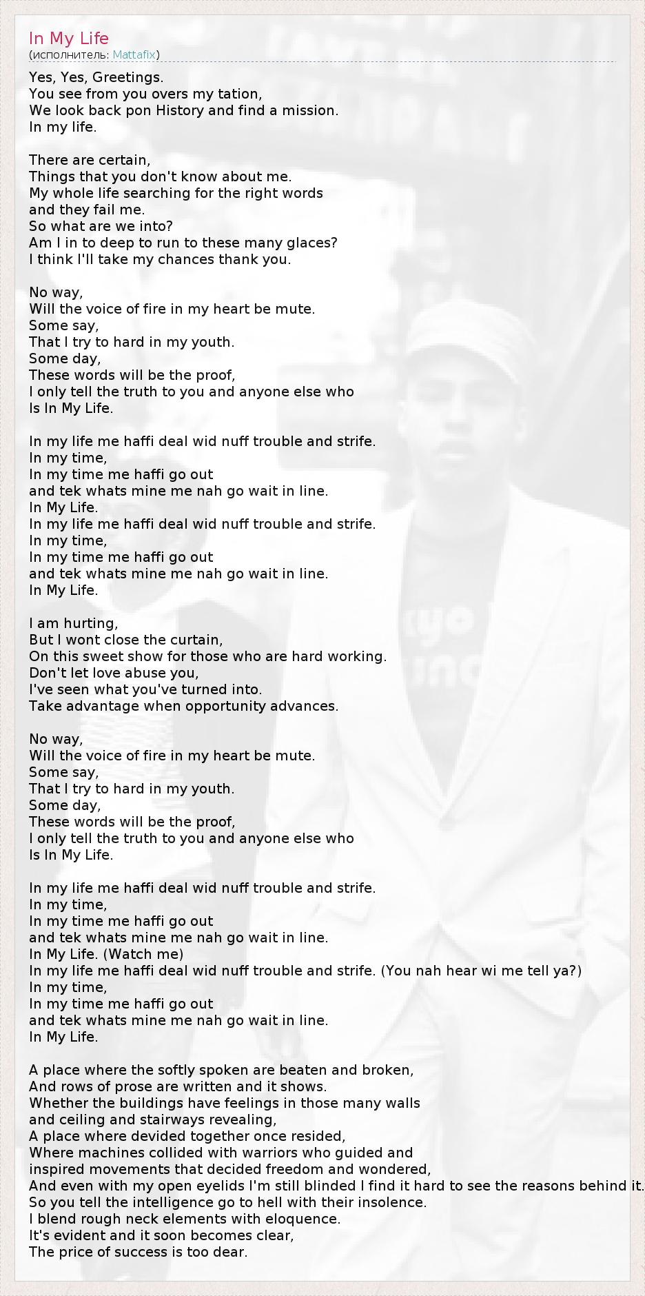 А как ты думаешь, о чем песня "In My Life" ?