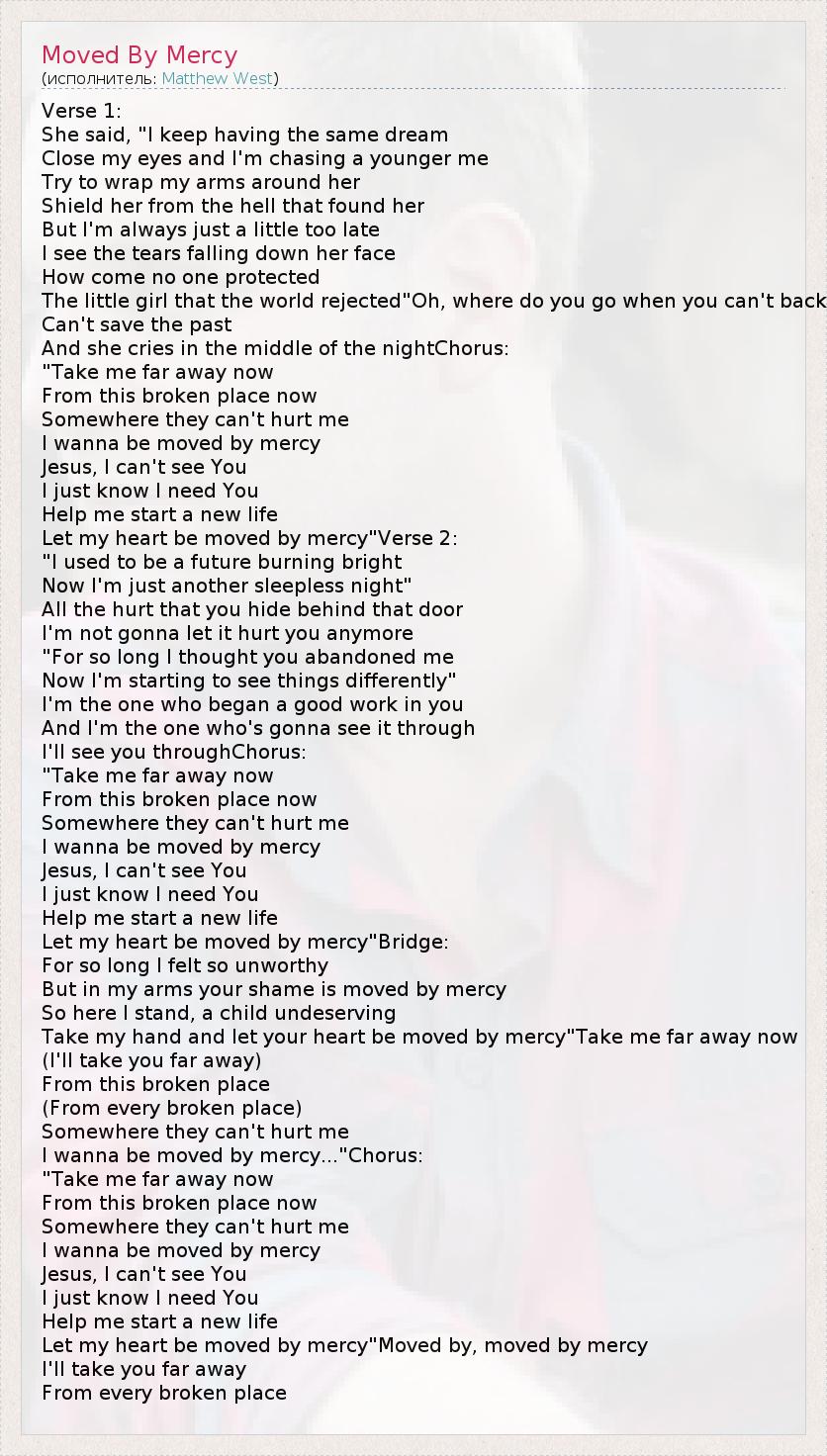 А как ты думаешь, о чем песня "Moved By Mercy" ?