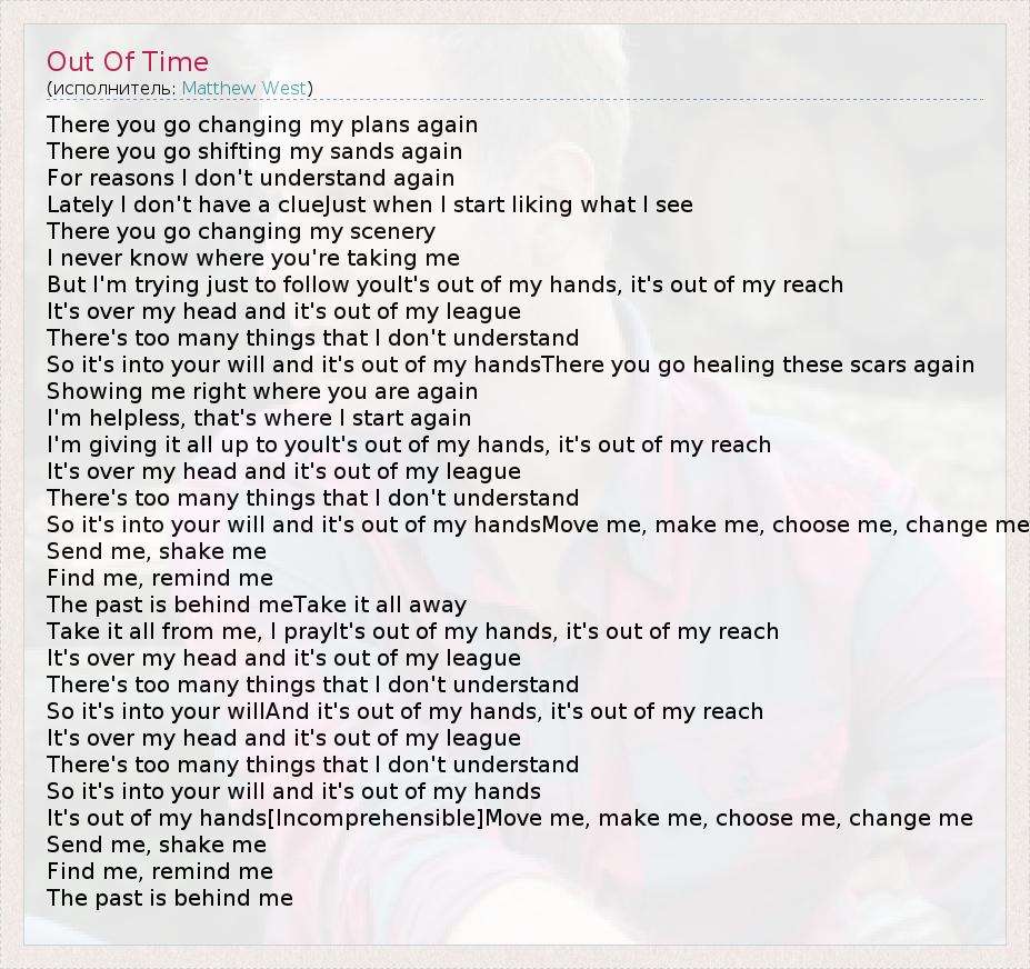 А как ты думаешь, о чем песня "Out Of Time" ?