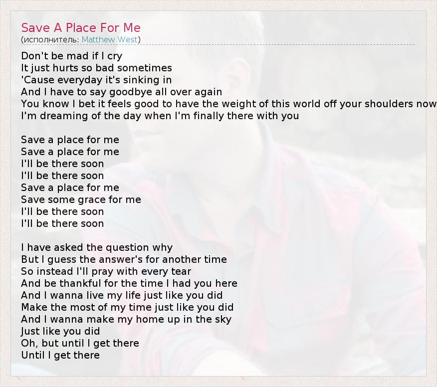 А как ты думаешь, о чем песня "Save A Place For Me" ?