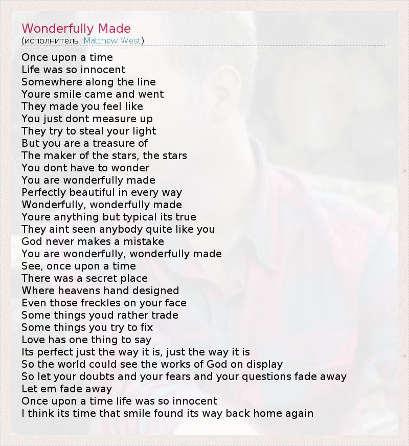 А как ты думаешь, о чем песня "Wonderfully Made" ?