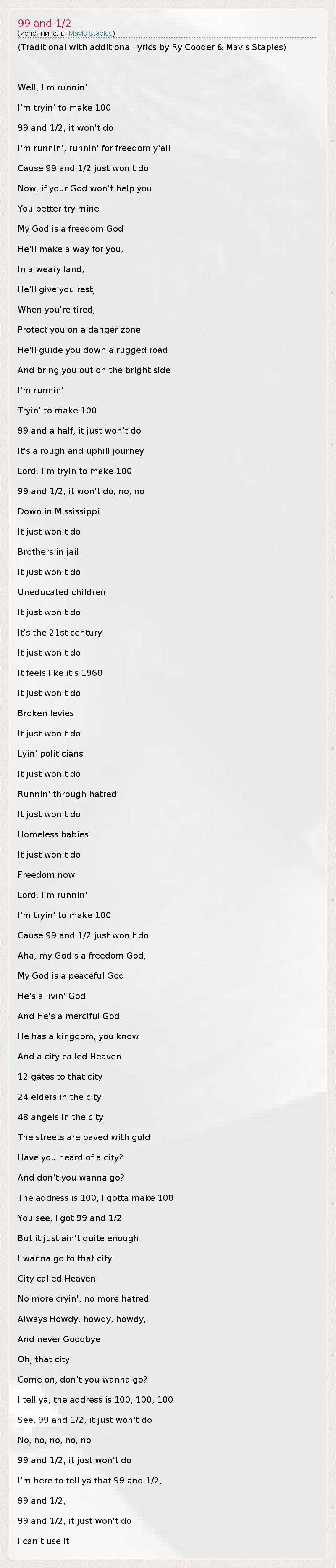 А как ты думаешь, о чем песня "99 and 1/2" ?