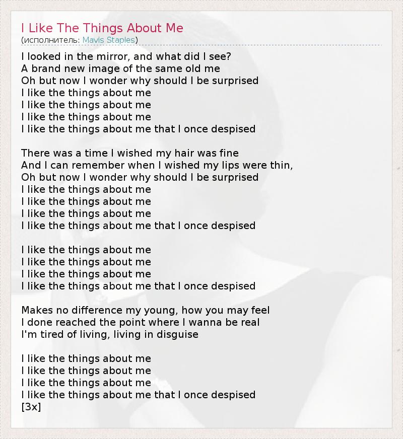 А как ты думаешь, о чем песня "I Like The Things About Me" ?