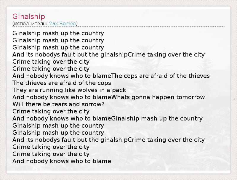 А как ты думаешь, о чем песня "Ginalship" ?