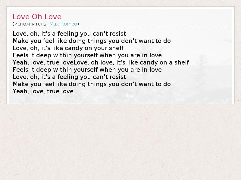 А как ты думаешь, о чем песня "Love Oh Love" ?