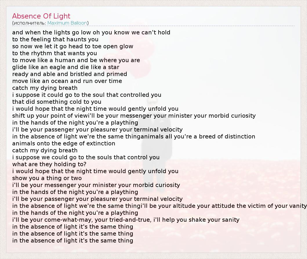 А как ты думаешь, о чем песня "Absence Of Light" ?
