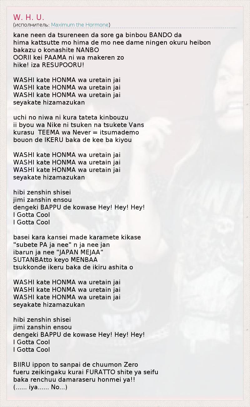 Это интересно:Maximum The Hormone マキシマム ザ ホルモン - панк группа, в музыке которой также чувствуется влияние ню-метала и фанка. Их стиль напоминает такие команды, как Static-x, Ramones, System of a Down которые, по словам Ryo — основного автора песен группы, являются их основными вдохновителями.Поразительный контраст поп-панка и трэш-метала составляет основу звучания... продолжение
