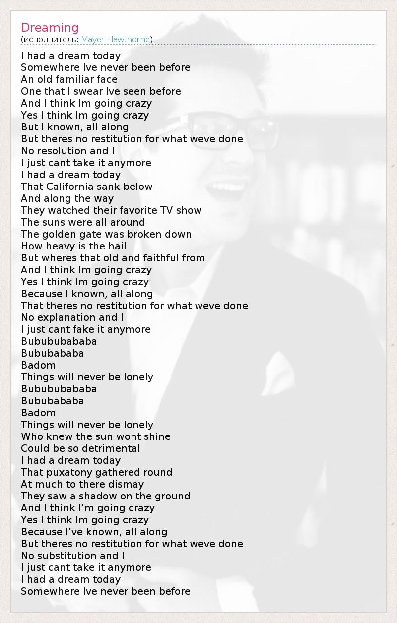 Это интересно:Мейер Хоуторн (р. 2 февраля 1979) родом из городка Энн-Арбор, пригорода Детройта. Мейер вырос на джазе и пластинках Motown, а среди своих кумиров называет Барри Уайта, Лероя Хатсона, Майка Терри, Айзека Хейза, и особенно Смоки Робинсона, Кертиса Мэйфилда и трио Ламона Дозье и братьев Холланд.До начала своей сольной карьеры Мейер выступал крунером в группах Athletic Mic League... продолжение